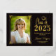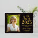 This fully customisable Class of 2025 graduation announcement invitation has real gold foil on all elements on the front side. The background colour is black and there is a photo template on the left side that has an ornate gold foil scrolled frame around it. The back side is also black coloured with a simulated gold scroll border surrounding the customisable wording that allows room to include the party details and RSVP information. Email niteowlstudio@gmail.com if you want a different colour other than black on the front or back. You can change the colour of the black background on the back side to whatever colour you want using the "edit using design tool" mode and changing the background colour. The scrolled frame will remain the simulated gold look on the back.