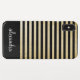 Black and Gold Foil Striped Monogram Pattern Personalised First Name Smart Phone Case. Please contact the designer for customised matching items.