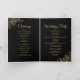 This beautiful foil card features a combination wedding invitation and program. The elegant and stylish design boasts golden curls and swirls with script lettering on a classic black background. The front features the invitation, which is printed in real pressed foil. The inside has the details on the wedding ceremony and bridal party. The back has space for a thank you note. Sophisticated, stylish, and chic, this combination invitation/program is sure to please.