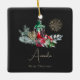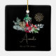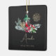 Celebrate the season with this ceramic ornament featuring the full lantern design set against a snowy black background. The watercolor foliage and gold snowflake evoke Nordic Scandinavian Christmas pattern charm and whimsical red white Xmas party warmth.