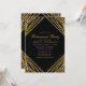 Black Gold Geometric Abstract Retirement Party Invitation. This elegant modern trendy abstract design features sparkly gold glitter lines with confetti on a solid black background.