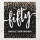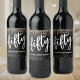 Personalised Fifty 50th Birthday Wine Bottle Labels. These custom labels feature the word "Fifty" across the centre in bold script, with "Name's 50th Birthday" displayed at the bottom in a clean sans serif font. Designed in a simple black and white theme, the minimalist style keeps the focus on the milestone while adding a touch of elegance. With a playful touch is faux gold flitter confetti at the top and bottom. Perfect for dressing up bottles during the party or gifting to guests. Fully customisable, you can change the font and background colours to match any birthday theme.