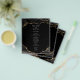 Agate Black and Gold Faux Glitter Wedding Menu. Faux gold glitter stone striations. Script font highlights with easy to read serif name font. Easy to adjust for your own wedding needs. Make your own menu, use your own text to create an elegant yet cheap and affordable event menu. Easy to personalise. Custom menu paper sheets.