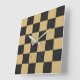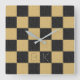 Black Gold Glitter Chequered Chic Trendy Monogram Square Wall Clock