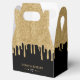 Black and gold glitter drip wedding favour box. Personalise it with your name and anniversary date.