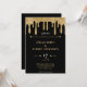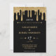Black and gold glitter drip wedding invitation. Personalise it with your event details.