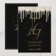 Black gold glitter drips monogram initials wedding invitation
