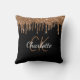 Black gold glitter drips monogram name cushion
