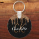 Black gold glitter drips monogram name key ring
