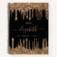 Black gold glitter drips monogram name notebook