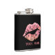 This is Black Gold Glitter Faux Foil Confetti Glam, Modern Flask. This flask feature is a girly and chic faux glitter gold lips on a black background. It is Fully customisable. It is a unique gift that's perfect for weddings, birthdays, and special events.