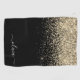 Black Gold Glitter Girly Monogram Name Golf Towel