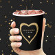 Black and gold glitter heart wedding / bridal shower paper cup. Personalise it with your event details.