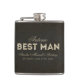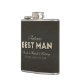 This stylish flask design by The Spotted Olive™ features a black background with an image of streaming gems coming down from the top and the word "best man" filled with an image of gold glitter. PLEASE NOTE: THIS DESIGN ONLY FEATURES A PRINTED IMAGE OF GLITTER; THERE IS NO PHYSICAL GLITTER USED OR INCLUDED; THERE ARE NO EMBELLISHMENTS. Copyright 2014-Present | The Spotted Olive™ | All Rights Reserved