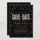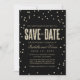 This modern & stylish wedding save the date announcement design by The Spotted Olive™ features an image of gold glitter look confetti dots on a black background with the word "SAVE THE DATE" filled with an image of gold glitter. PLEASE NOTE: THIS DESIGN FEATURES AN IMAGE OF GLITTER CONFETTI. THERE IS NO GLITTER, CONFETTI OR EMBELLISHMENTS. THIS IS A FLAT PRINTED DESIGN. COPYRIGHT ©2014 The Spotted Olive™. All Rights Reserved.