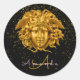 Black Gold Glitter Medusa Script Haute Couture Classic Round Sticker