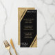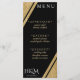 Black and gold glitter wedding reception menu card with corner stripe. Elegant typography for an expensive look at an affordable price. Customise the meal list and personal details. Great for a modern minimalist wedding theme with a touch of style.