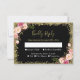 Black Gold Glitters Pink Floral Wedding RSVP Reply Card