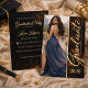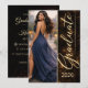 Black and gold graduation design featuring a glowing dust backdrop, flowing script name display, and refined layout. Paired with a full photo front and clean event details on the back. Ideal for hosting a polished grad night with dinner, drinks, and dancing.