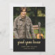 Black with gold lettering this grad open house invitation has stylish typography. One photo, name and class of 2022 on the front. Black with gold text on the back for invitation details and graduate's future plans if desired.