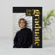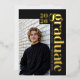 Make a bold, modern statement with this editorial-style photo graduation announcement featuring real gold foil typography and a classic black palette. This customizable template allows you to personalize the final two digits of the class year, graduate’s name and school, and upload two photos for a clean, magazine-inspired layout. Adjustable letter spacing lets you fully justify the name and school text for a tailored, high-end look. Designed for seniors who want a timeless yet fashion-forward announcement with crisp accents and genuine gold foil detailing. © Kimbellished, LLC