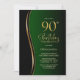 Invite your friends and loved ones with this modern black, gold and green 90th birthday party invitation. The customisable text area in this invitation template allows you to effortlessly include all the necessary details for your special birthday celebration, including the date, time, venue, and RSVP information. A variety of paper types and corner styles are available for your unique invitations, along with the option to download if you prefer a digital format.