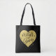 Cute Personalised mother of the groom tote bag features heart shape, modern script, and custom name in colour editable black and gold, great wedding party gifts.