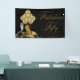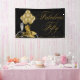 Womans 50th birthday party banner with pretty gold high heel shoes, balloons, pearls and champagne with elegant Fabulous Fifty script on a black and gold background. You can easily customise this elegant black and gold 50th birthday banner for your event by adding text in the font style of your choice. You can also change the background colour.