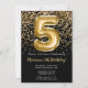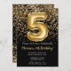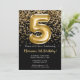 Black Gold Kids Girl 5th Birthday Party Invitation