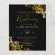 The intricate gold lace foil-look design contrasts beautifully against the black background, creating a dramatic and luxurious effect. These invitations are perfect for formal or black-tie weddings, as well as modern weddings with a touch of glamour.