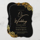 The intricate gold lace foil-look design contrasts beautifully against the black background, creating a dramatic and luxurious effect. These invitations are perfect for formal or black-tie weddings, as well as modern weddings with a touch of glamour.