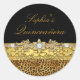 Quinceanera Sticker. Gold & Black with Leopard print. Exclusive Zazzle. Customize with your own details. PLEASE NOTE all flat images! They Do NOT have real gold, Diamonds or Jewels!!