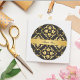 Black & Gold Lily Floral Pattern Thank You Classic Round Sticker