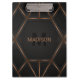 A cool luxurious style abstract clipboard featuring black and gold geometric design. Personalise with your monogram and name.