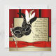 Elegant dark red and gold feather mask masquerade party invitation template. Customise for your event by simply choosing the "Customise it!" button to begin.