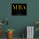 An MBA graduation party welcome sign poster with gold foil, white text, and a black background. Simply add your information, add this poster to your cart, and celebrate this major accomplishment.