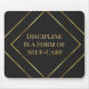 Elevate your workspace with this sleek and empowering mouse pad featuring the quote “Discipline Is a Form of Self-Care” in refined gold typography on a deep matte black background, it reminds you that structure can be soothing — and focus, a form of self-love.