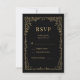 Invite guests to reply in style with this minimalist black and gold wedding RSVP card. The rich black background pairs with refined gold accents for a luxurious and modern look. Clean lines and clear text ensure easy readability and a polished, print ready finish that enhances any elegant wedding suite.