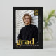 Celebrate a major milestone with this modern typography graduation announcement designed for a refined, masculine look. Featuring a black background, white typography, and real gold foil accents, this double-sided graduation card delivers a timeless yet fashion-forward presentation. The template allows you to personalize the class year, graduate’s name, and school on the front with your main photo, while the back includes space for a custom message and a 3-photo collage. Designed for graduates who want a clean, confident announcement with premium foil detailing and modern typography. © Kimbellished, LLC