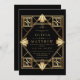 Modern stylish dark wedding invitation black with gold dust on with a gold ink pour effect (the gold is a digital effect, not real foil!) and modern calligraphy. Classy and elegant, simple and modern invitation.