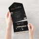Black & Gold Modern Botanical Wedding All In One Invitation