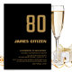 Black Gold Modern Minimalist 80th Birthday Party Invitation