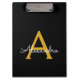 Black Gold Modern Script Girly Monogram Name Clipboard