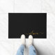 Black and Gold Simple Script Monogram Name and Initial House Doormat. This makes the perfect sweet 16 birthday, wedding, bridal shower, anniversary, baby shower or bachelorette party gift for someone that loves glam luxury and chic styles.