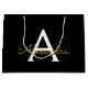 Black Gold Modern Script Girly Monogram Name Large Gift Bag