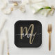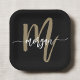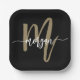 Black Gold Modern Script Girly Monogram Name Paper Plate
