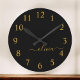 Black Gold Modern Script Girly Monogram Name Round Clock