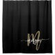 Black Gold Modern Script Girly Monogram Name Shower Curtain