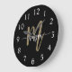 Black Gold Modern Script Monogram Name Large Clock