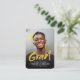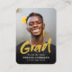 Modern brush script mini size Graduation Announcement with photo in black and gold, simple and unique. Custom it with your own photos and grad party information.